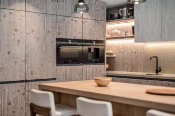 Kompletní truhlářské vybavení rodinného domu. Vstupní hala, kuchyňská linka, obývací pokoj, posezení ve sklepě, schodiště, ložnice, koupelny. Vše sladěné.